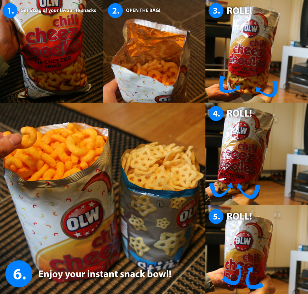 | Mr. Kawaii wrote: | | >Opening a bag of snacks from the top and not the bottom. |