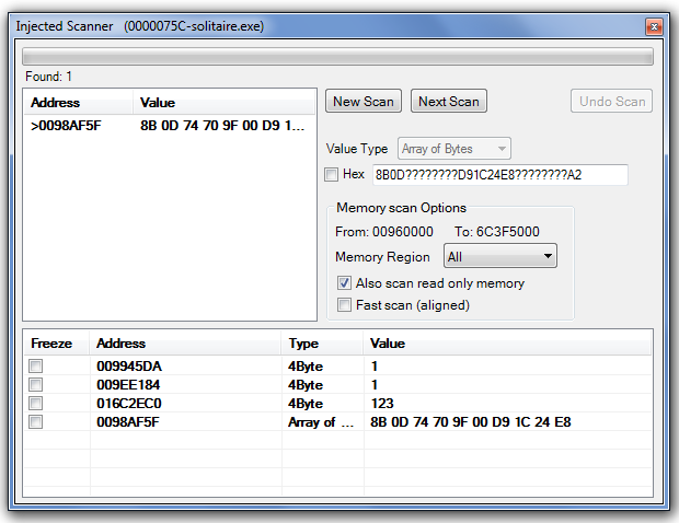 I'm not gonna be injecting anything to scan, the memory scanner is injected already. Thats why i called it injected reverse scan.
