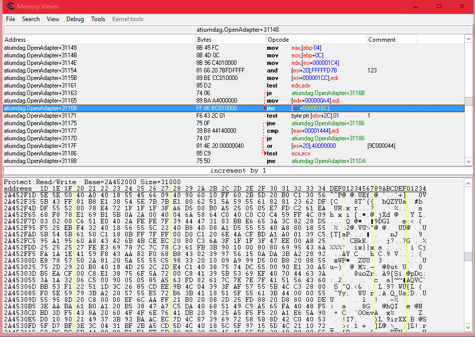 If an instruction pops up, find out what addresses that instruction accesses.