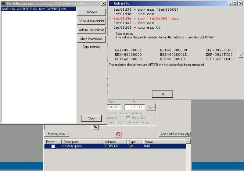 Next I have done "Find out what writes to this address" and then went into more info and received the following information: